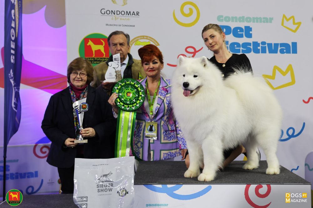 O vencedor foi o Samoiedo “Samspring Call Me Maybe” de Pedro Silva. Na fotografia com O vencedor com Carla Molinari (Presidente do CPC) e os juízes Juan Naveda (BOB e BOG) e Marie Thorpe (BIS).