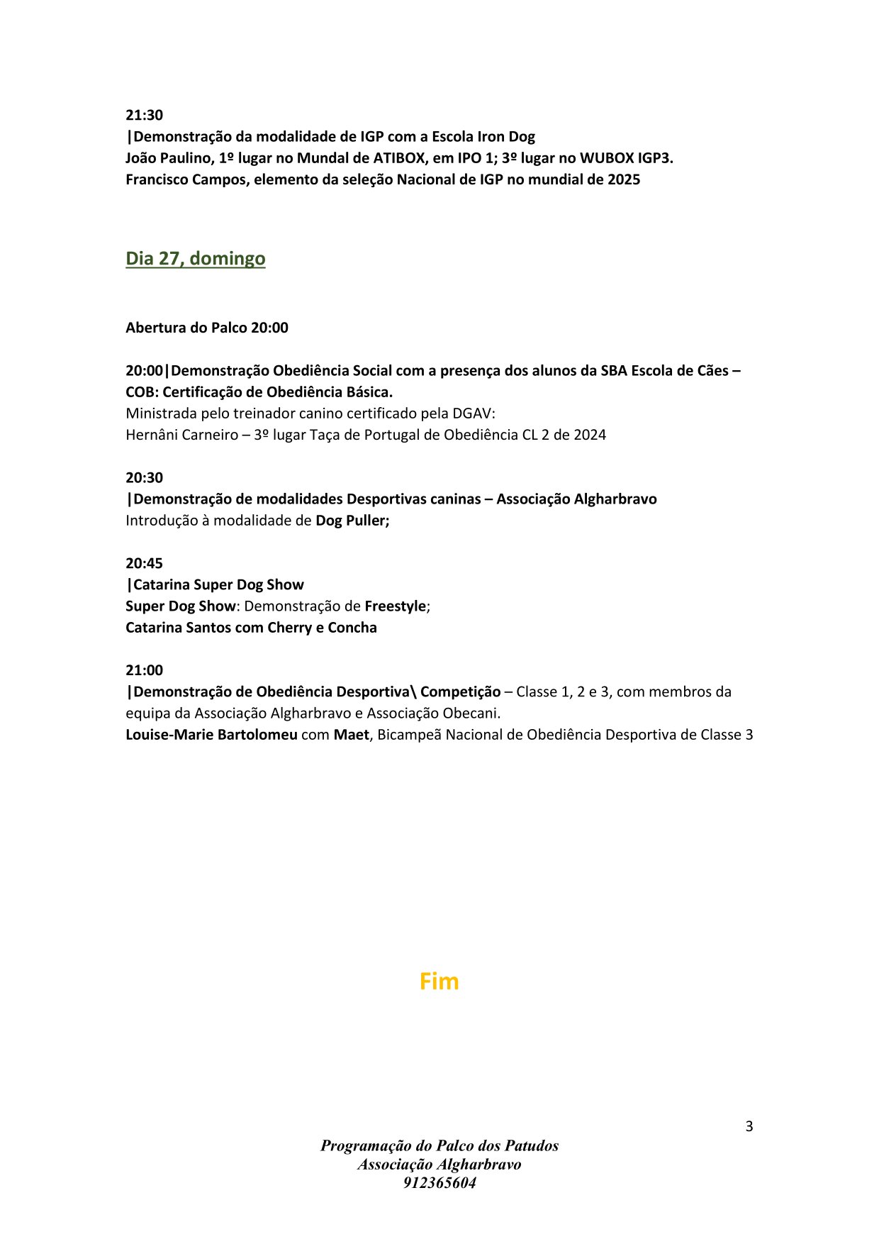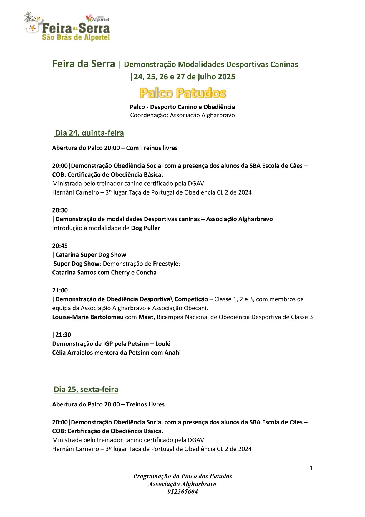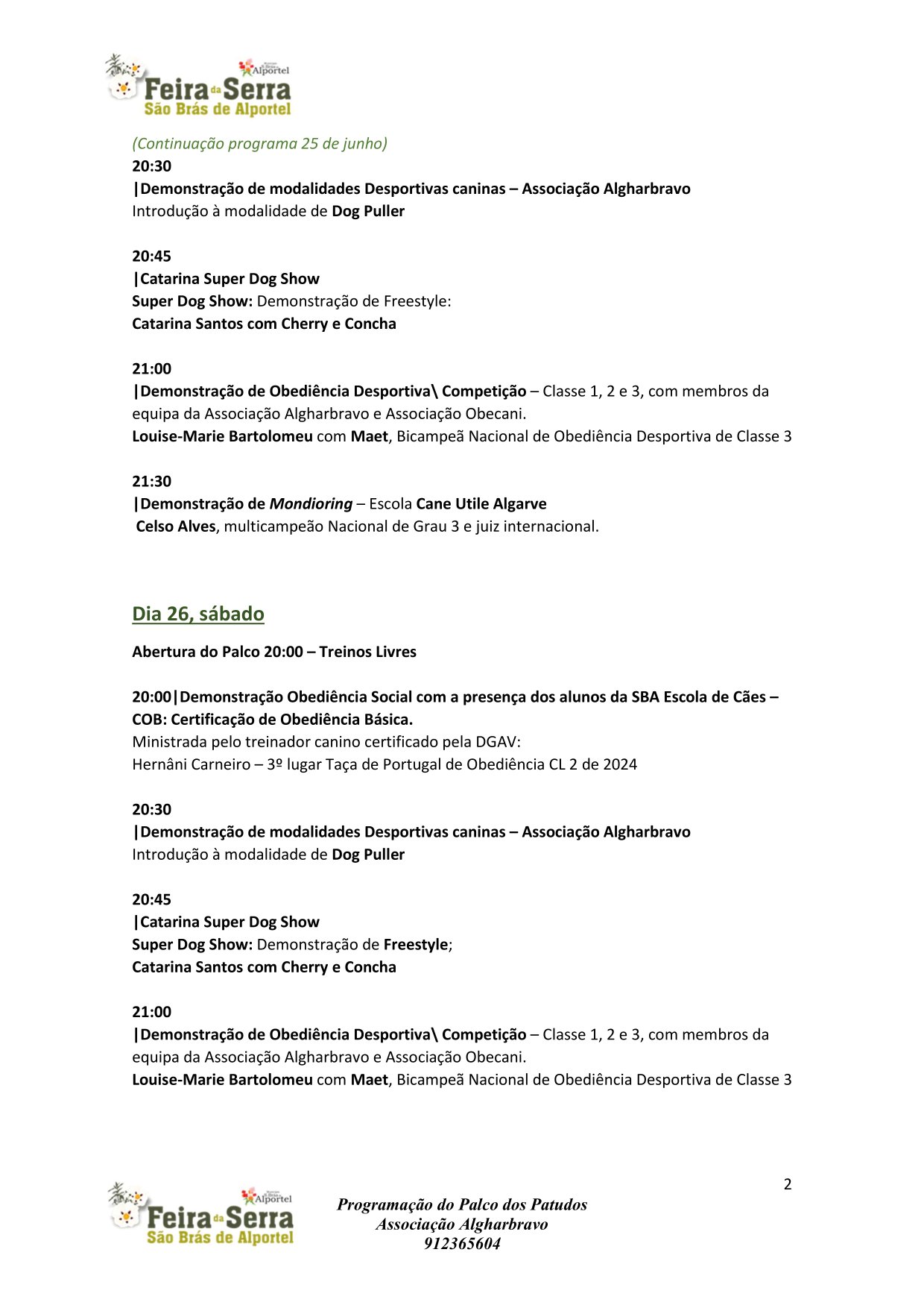 O programa conta com a presença de atletas da Cane Utile Algarve, da Iron Dog, da Obecani, da Petsinn, da Catarina Super Dog Show e da SBA Escola de Cães, para diversas demonstrações de desporto canino.