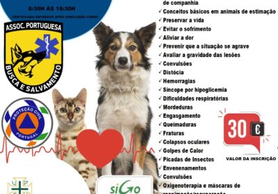 A Associação Portuguesa de Busca e Salvamento vai ministrar um Curso de Primeiros Socorros a Animais de Companhia, dia 18 de março, no Porto.